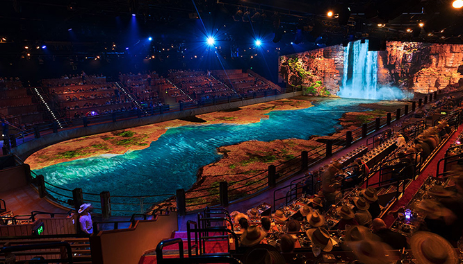 全澳大利亞唯一的大型國際級表演,好萊塢式大制作重現澳大利亞動人曆史,展現内陸Outback牛仔文化。活靈活現的動物明星,挑戰極限的馬戲特技,目眩神迷的大型實景特效和音效,重現澳洲奧米歐小鎮上的高山大路曠野奇景和昔日的神秘傳說,絕對是你前所未見、超越想像的震撼演出,這場大型室內牛仔表演節目,運用極具藝術感的燈光和音響,配合澳洲最棒的馬術和牧場表演來重現極富色彩的澳洲內陸傳奇,同時享用三道菜肴組成美味大餐及無限量暢飲
